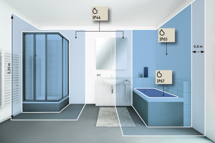 以60度角从垂直线两侧溅出的水不应引起损害 |